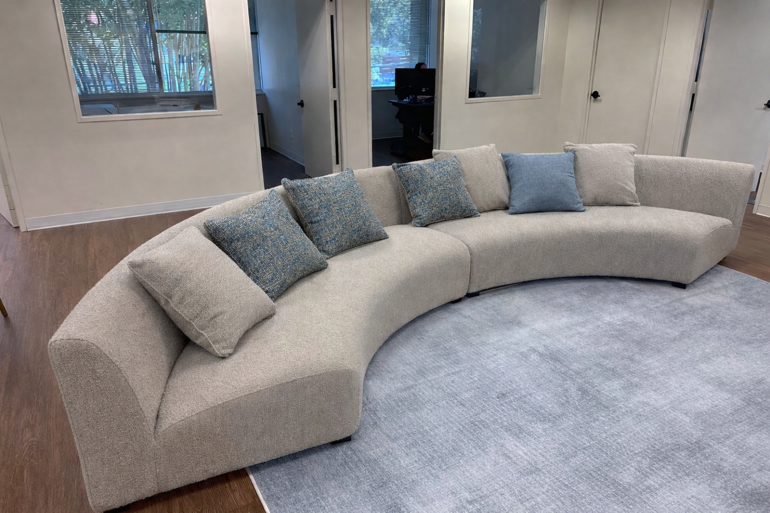 remove the small light blue pillow that is on the left side of the soft and keep the rest as is
