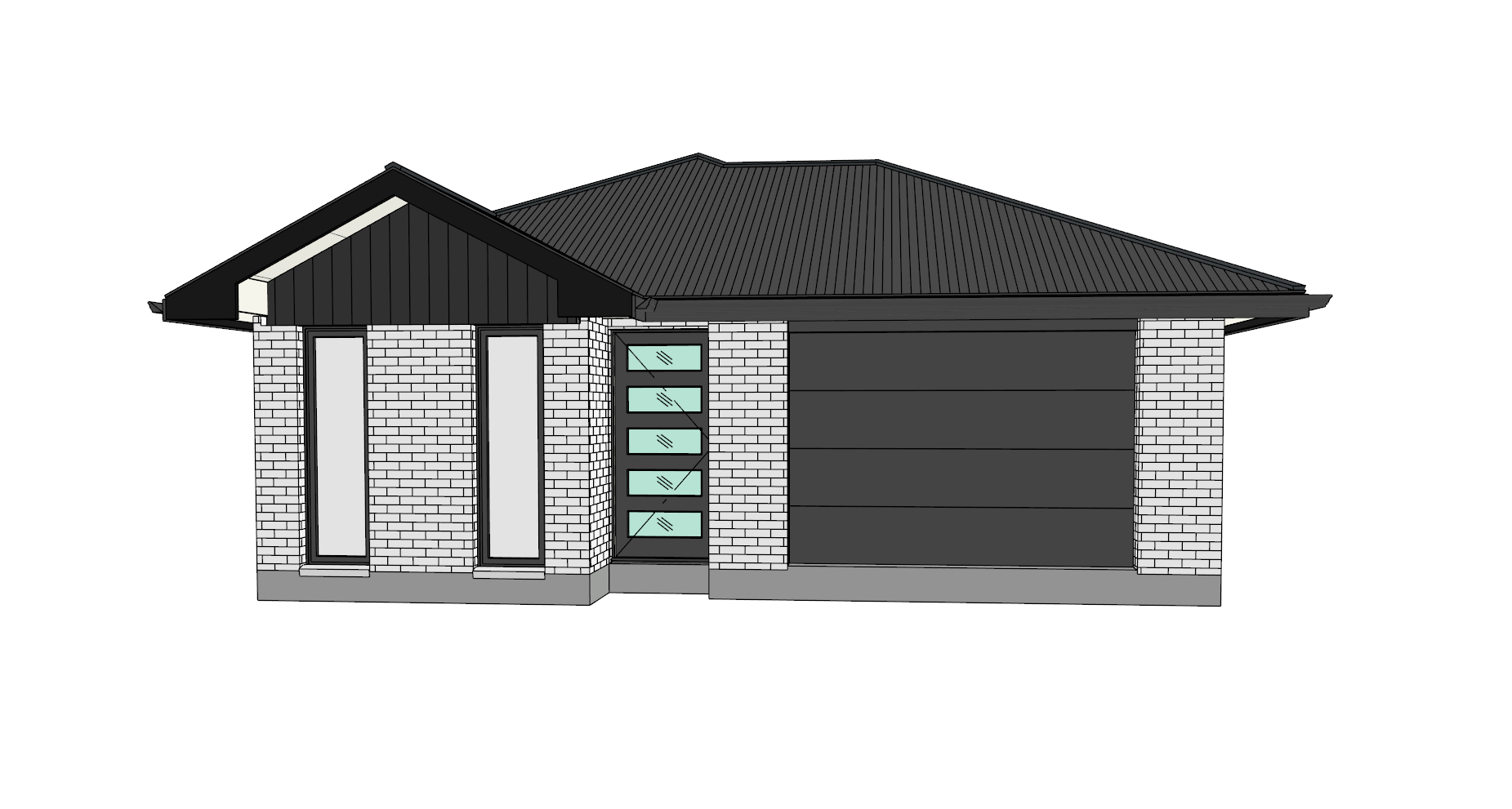 white brick black wood with a driveway and fencing short grass