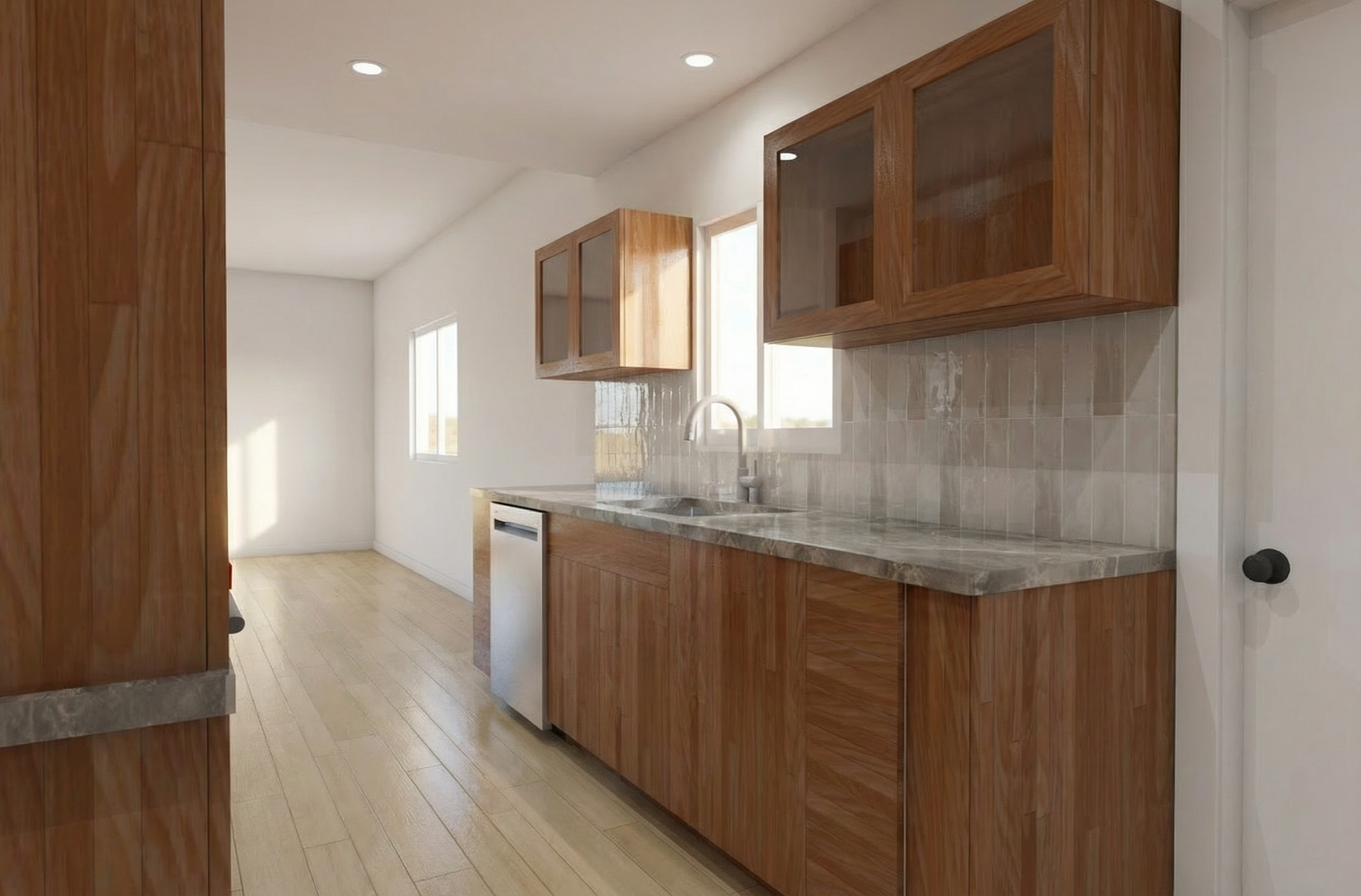 make this a more photo realistic scene soft afternoon lighting clean up the brick massing material