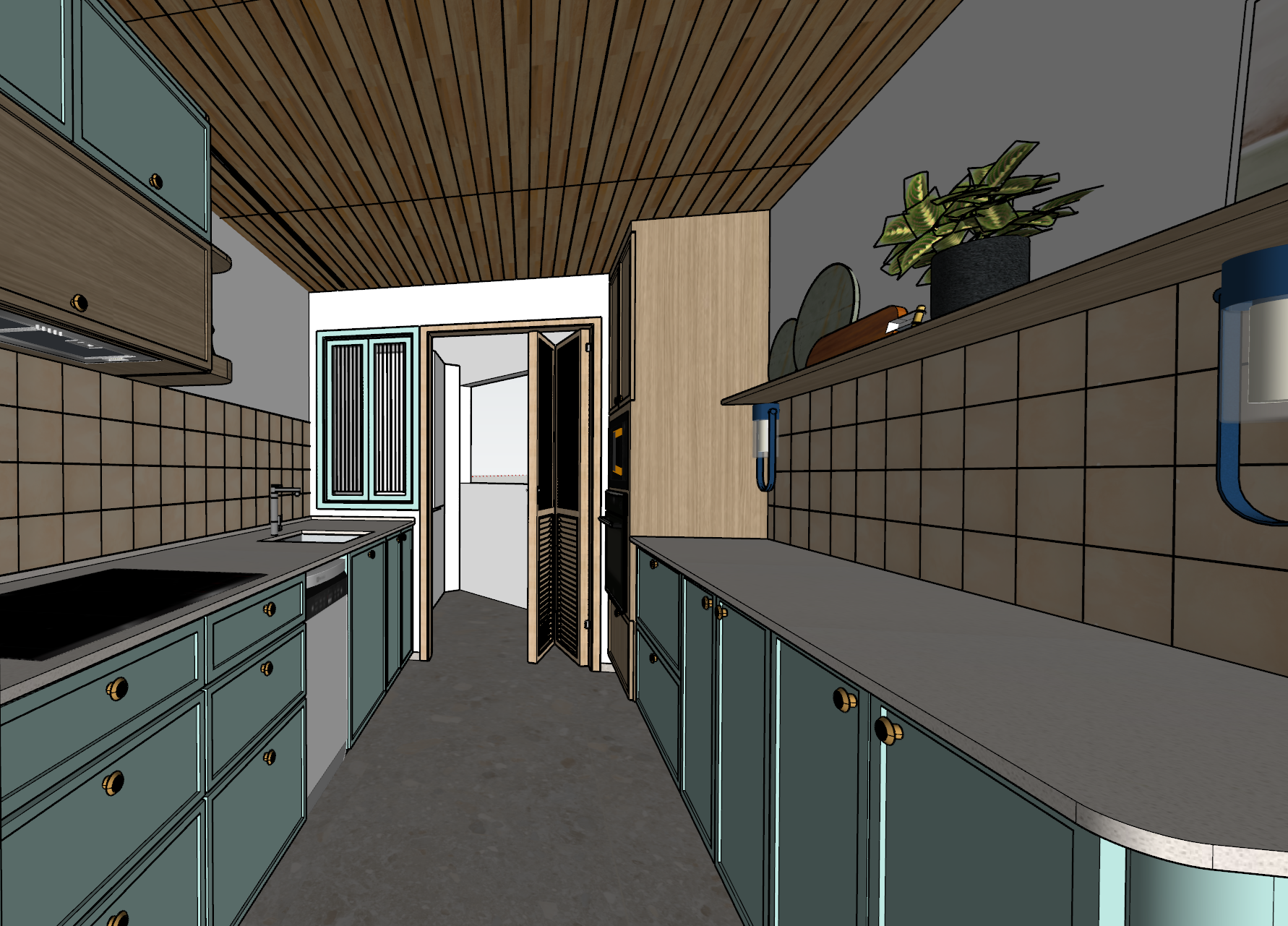 a kitchen mixing classical and comtemporary elements soft morning sunlight