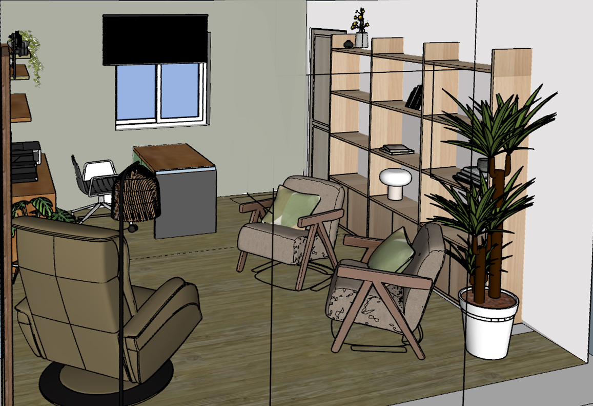 tapis rond beige lampadaire allum cocooning mur du fond vert gris cosy chaleureux