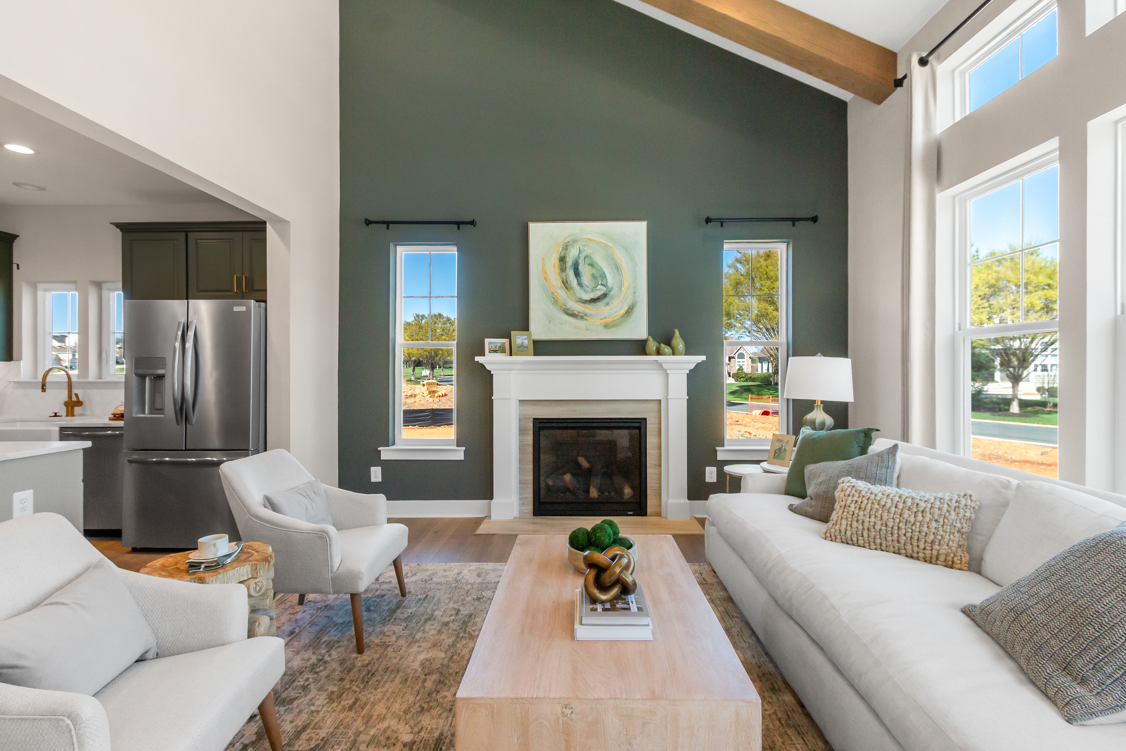 add holiday decor and neutral color curtains