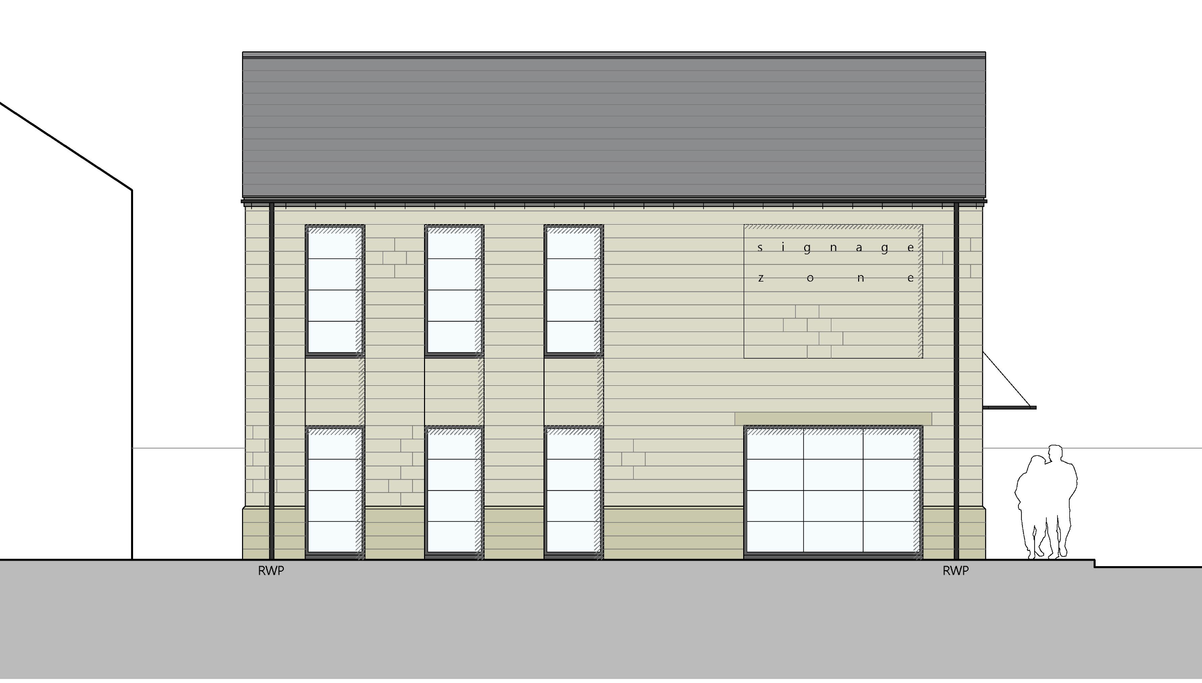 exterior shot ultra realistic 3d architectural render of a contemporary roadside retail development based on technical architectural drawings accurate roof geometry with multi sided hip roof covered with black clay tiles light stone and red brick fa ade architectural elements clean lines and balanced window composition according to front side and back elevations
