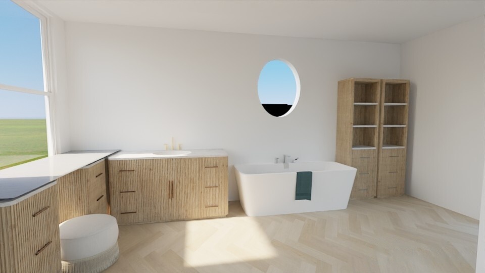make the cabinets on the right taller