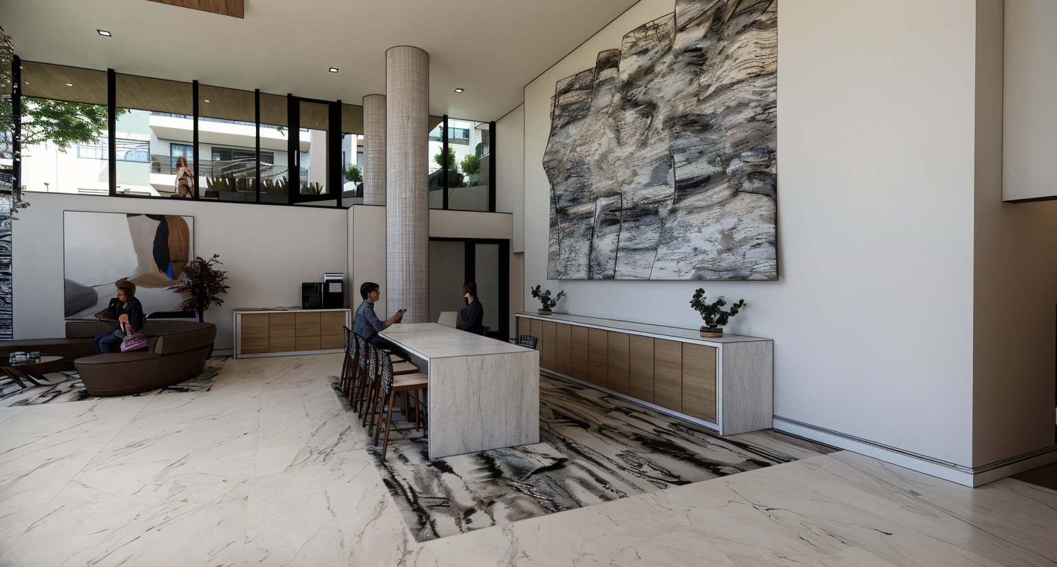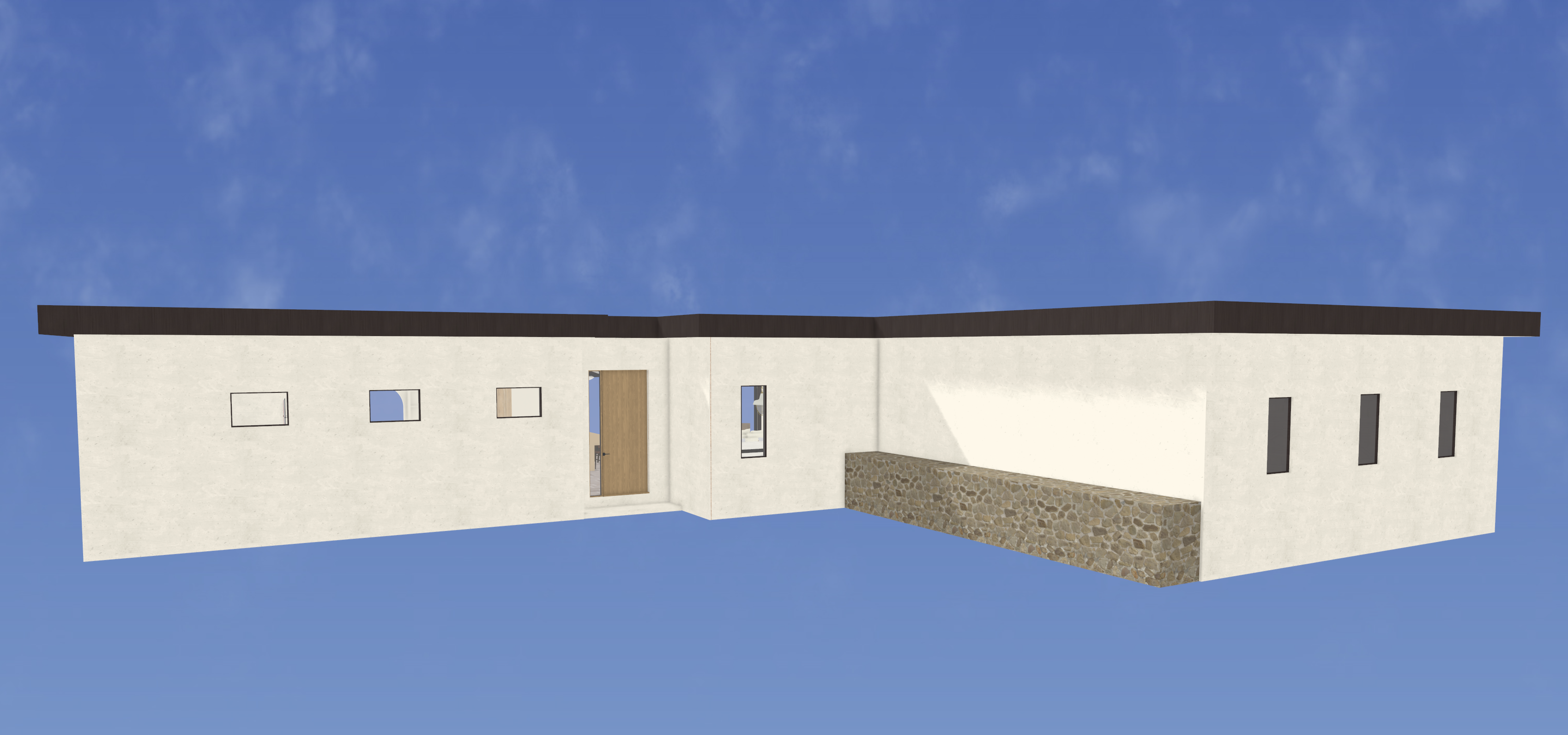 modern exterior shot make this realistic and add plants to the stone planter box architecture