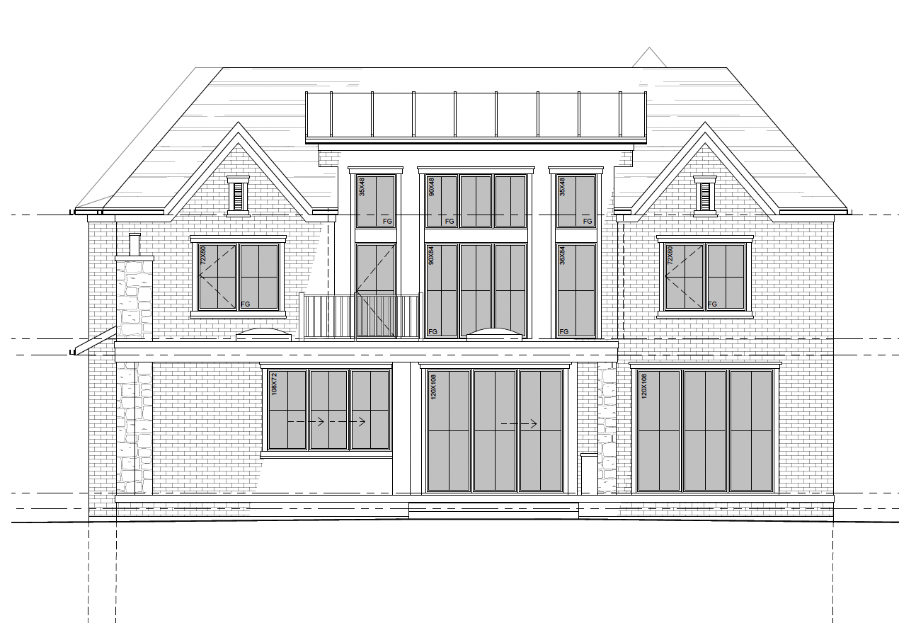 modernist exterior shot make the brick grey take out the railing on top of the windows on the second floor the roof is shingles not metal architecture