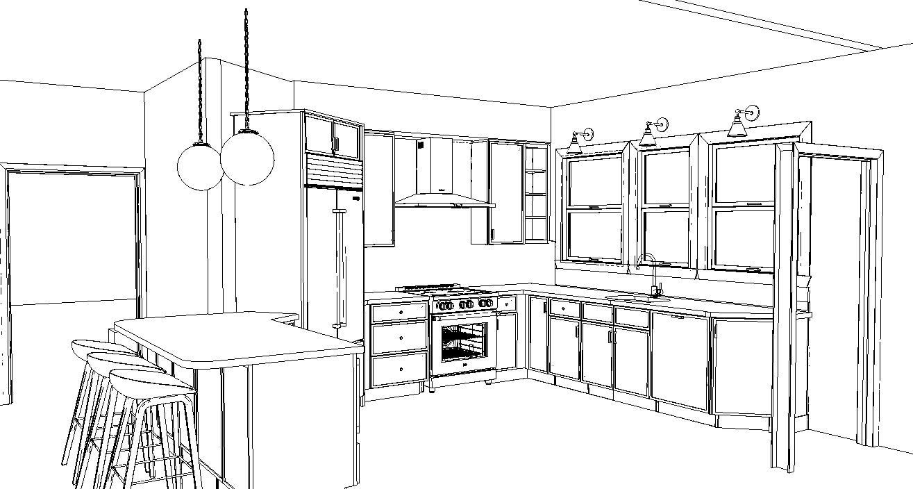 make blue cabinets and white counter with marble backsplash and add ship lap on the left side of the refrigerator panel