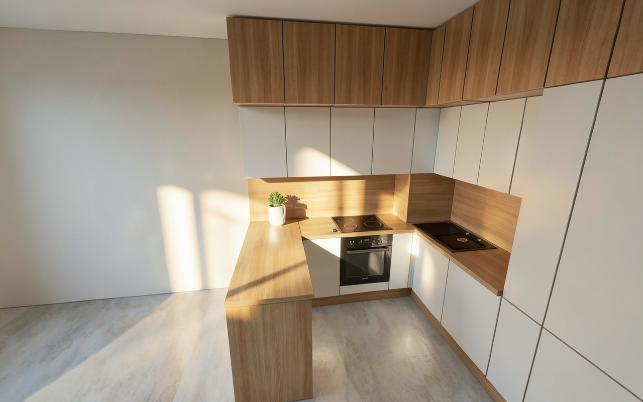 do not change any colors or materials only enhance realism lighting quality and material texture so the scene appears like a professional architectural photograph natural light bounce subtle shadow gradients and real world material imperfections