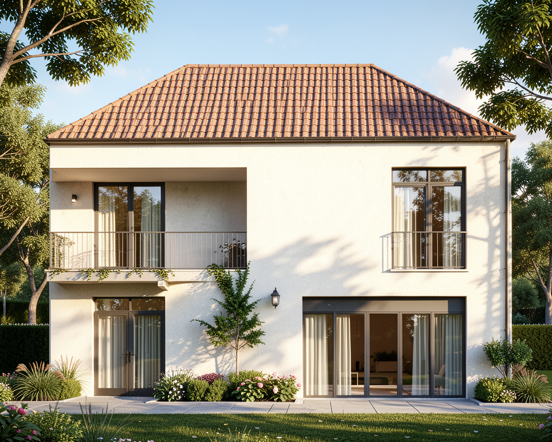 exterior shot keep the image and add in this to the whole ceiling and down the cream wall
