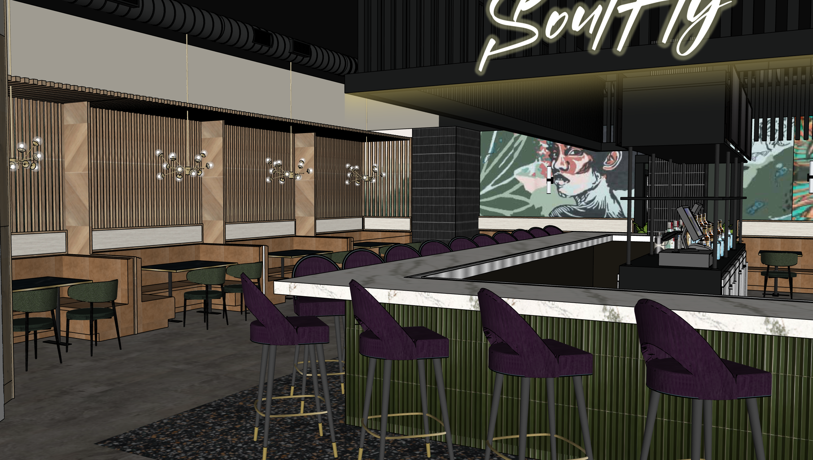 keep colors as shown light chandeliers near slat wall light neon soulfly ssign above bar soft glow below countertop