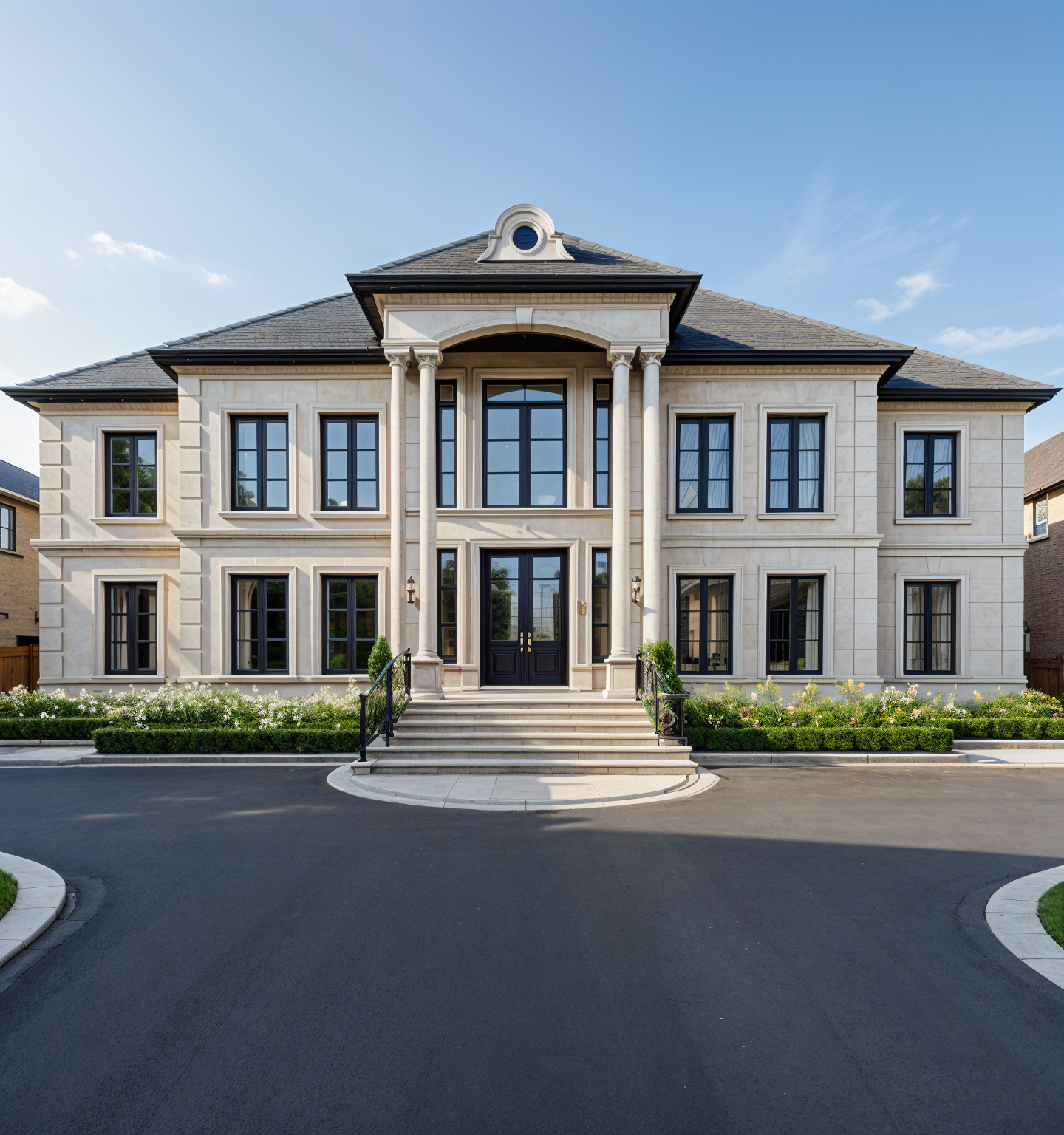 exterior photography of contemporary residential architecture pure white building elegant and minimalist with clean geometric lines crisp white facades the overall aesthetic conveys a modern and refined minimalism of mediterranean inspiration the architecture maintains the exact color palette especially the white facades and preserves the proportions of the original composition and spatial arrangement without introducing changes all windows are framed with black aluminum