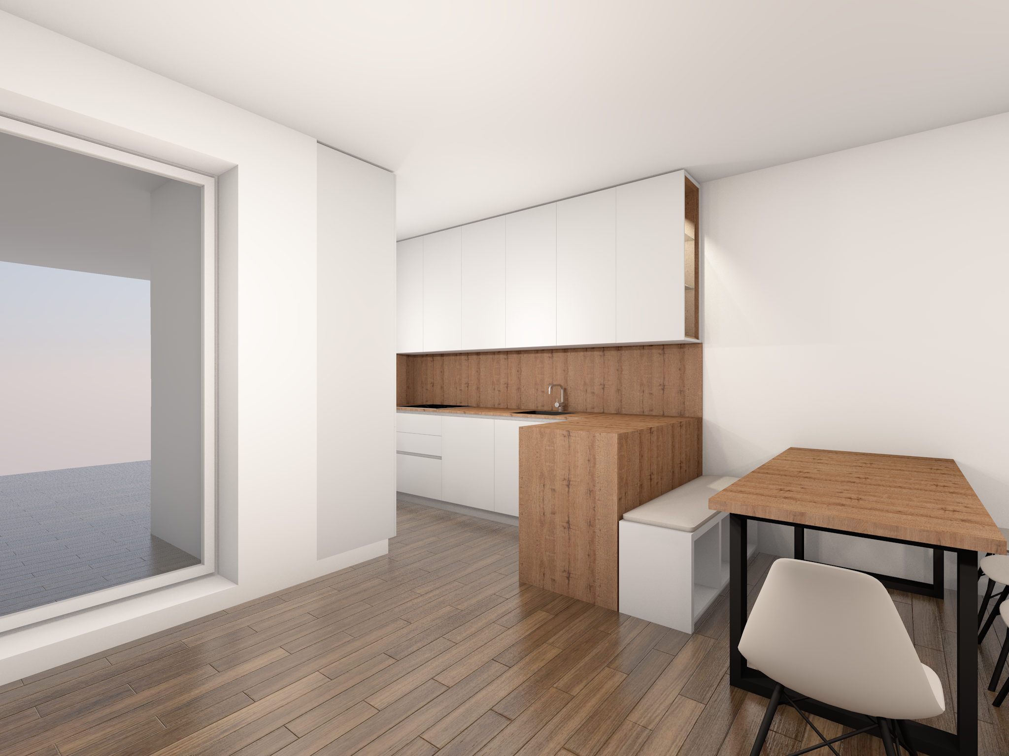 white glossy finish cabinets modern kitchen oak wood counter high detailed render moderate lightning add kitchen accessories keep original nodes keep original nodes do not add anything i didn t ask