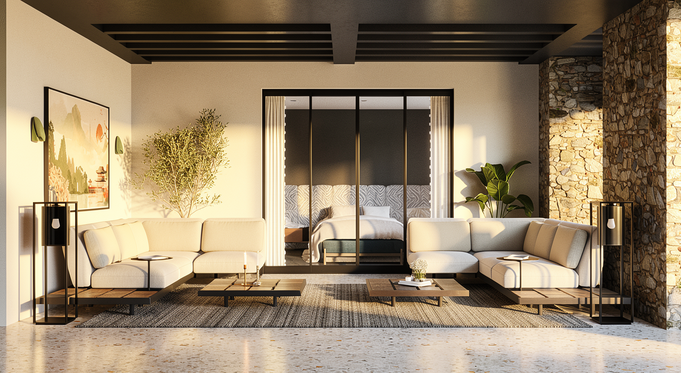 this is a renovation of an apartment the tile has a specific pattern that you should keep the walls are white the kitchen cabinets are light blue from benjamin moore glass slipper 1632 the skirting board is light oak wood and goes only where we have wall the stools are light oak wood the light is artificial