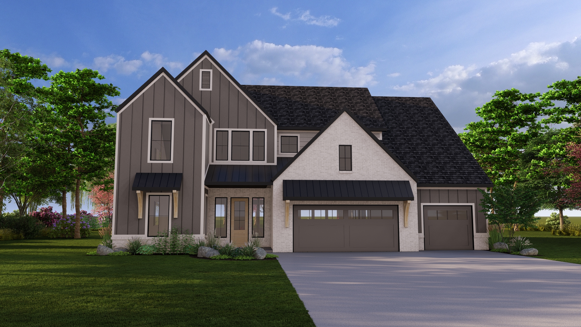 modernist exterior shot stone and white painted batt board siding with black shingle and a metal roof over entry black windows and cedar accents light the inside up architecture