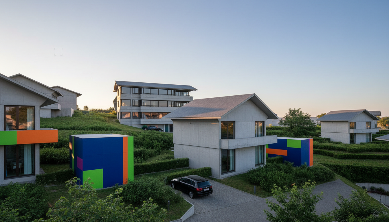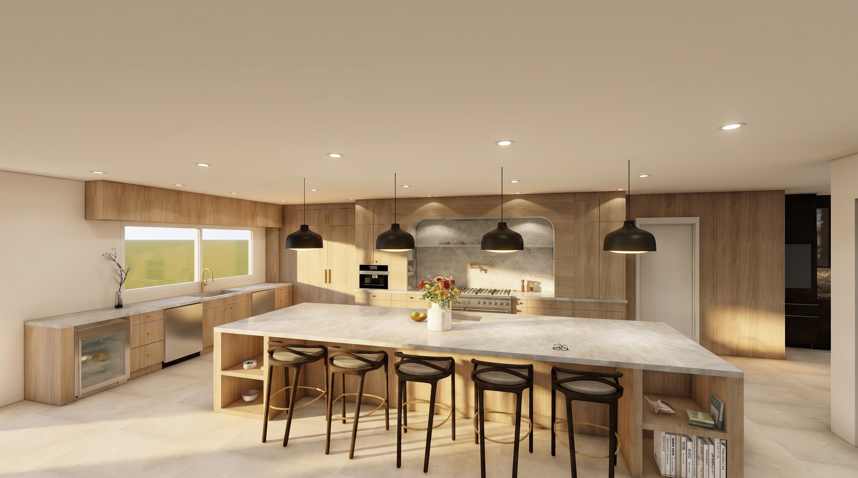 render a luxurious modern office interior with a minimalist design use soft beige and cream for the walls and ceiling complemented by natural wooden textures for panels and shelves incorporate sleek contemporary furniture in light gray tones with leather accents add large expansive windows with sheer curtains letting in abundant natural light for a warm and inviting atmosphere include subtle green elements with potted plants to add vibrancy the lighting should be a mix of recessed warm led lights that create a sophisticated ambiance the overall atmosphere should be calm and elegant exuding a sense of professionalism and style create several sepperate offices with glass walls