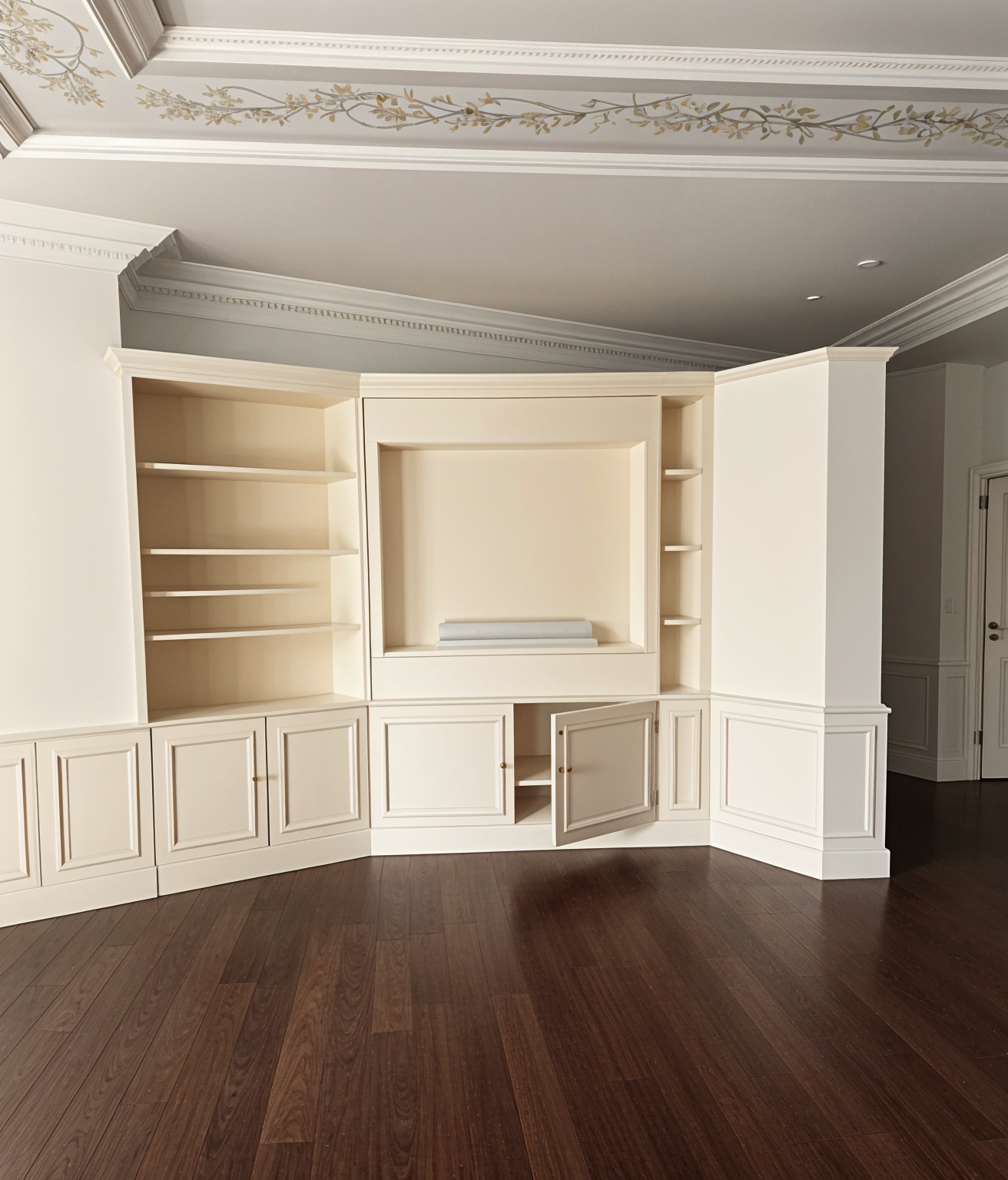 change the color of the shelf and moldings to dark gray inside let the back of the shelf be rust colored