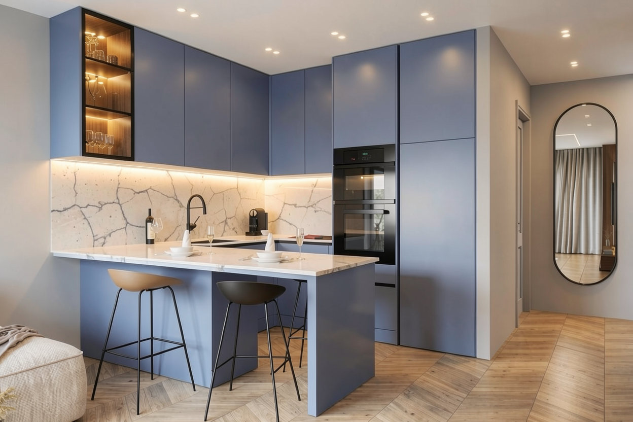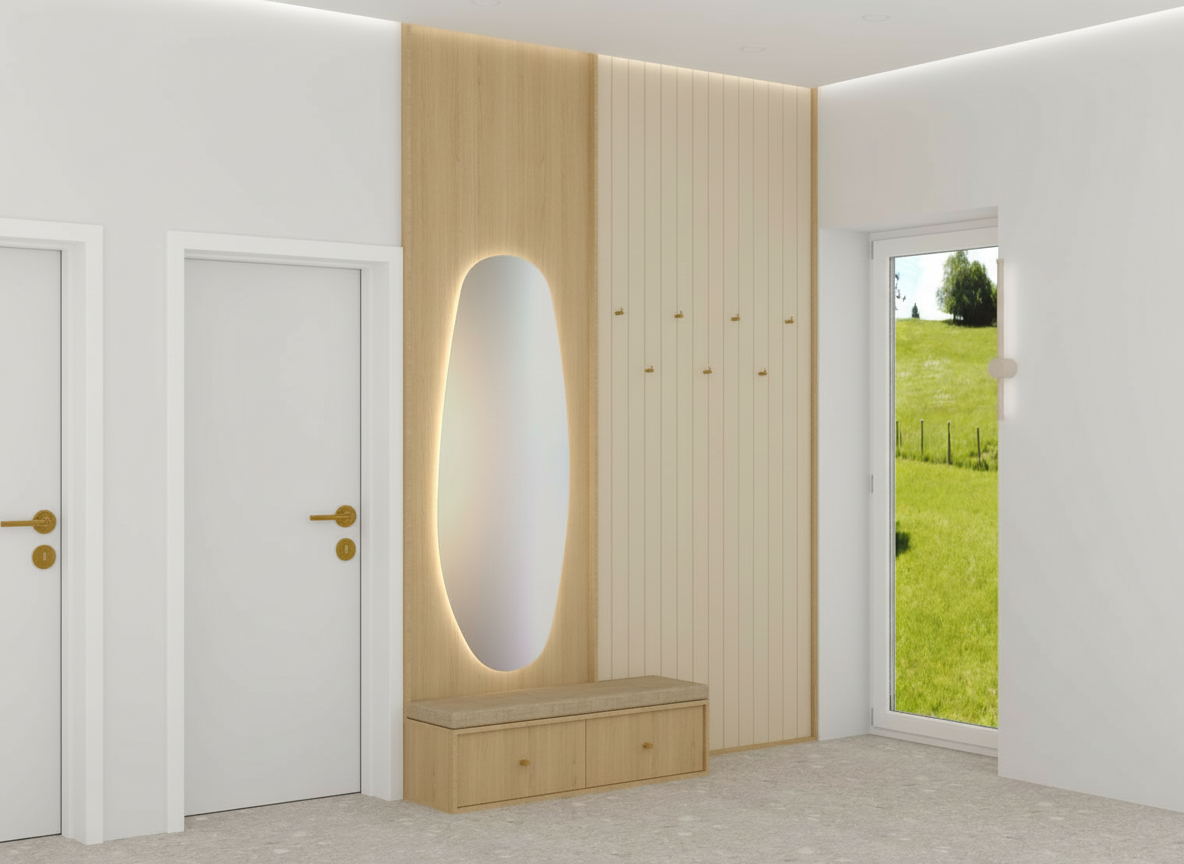 relight this interior scene using only natural daylight do not modify the architecture materials finishes furniture or camera position in any way all ceiling lights must remain turned off and no artificial light sources should be visible or contribute to the scene the space should appear illuminated exclusively by daylight entering through the existing windows whether visible or not in the render create a bright evenly lit atmosphere with soft diffused light that fills the entire room light should penetrate deeply into the space gently illuminating walls furniture and corners without leaving dark or heavy shadow areas avoid strong directional sunlight or harsh contrasts shadows should be soft subtle and low in contrast use balanced exposure so the scene feels luminous but still realistic avoid overexposure or blown highlights and ensure no areas are underexposed maintain accurate material colors with a neutral to slightly warm daylight tone whites should appear clean and clear not gray or yellow the final result should feel like a naturally bright daytime interior calm and airy with smooth light gradients and a soft photorealistic quality similar to architectural photography lit only by natural daylight