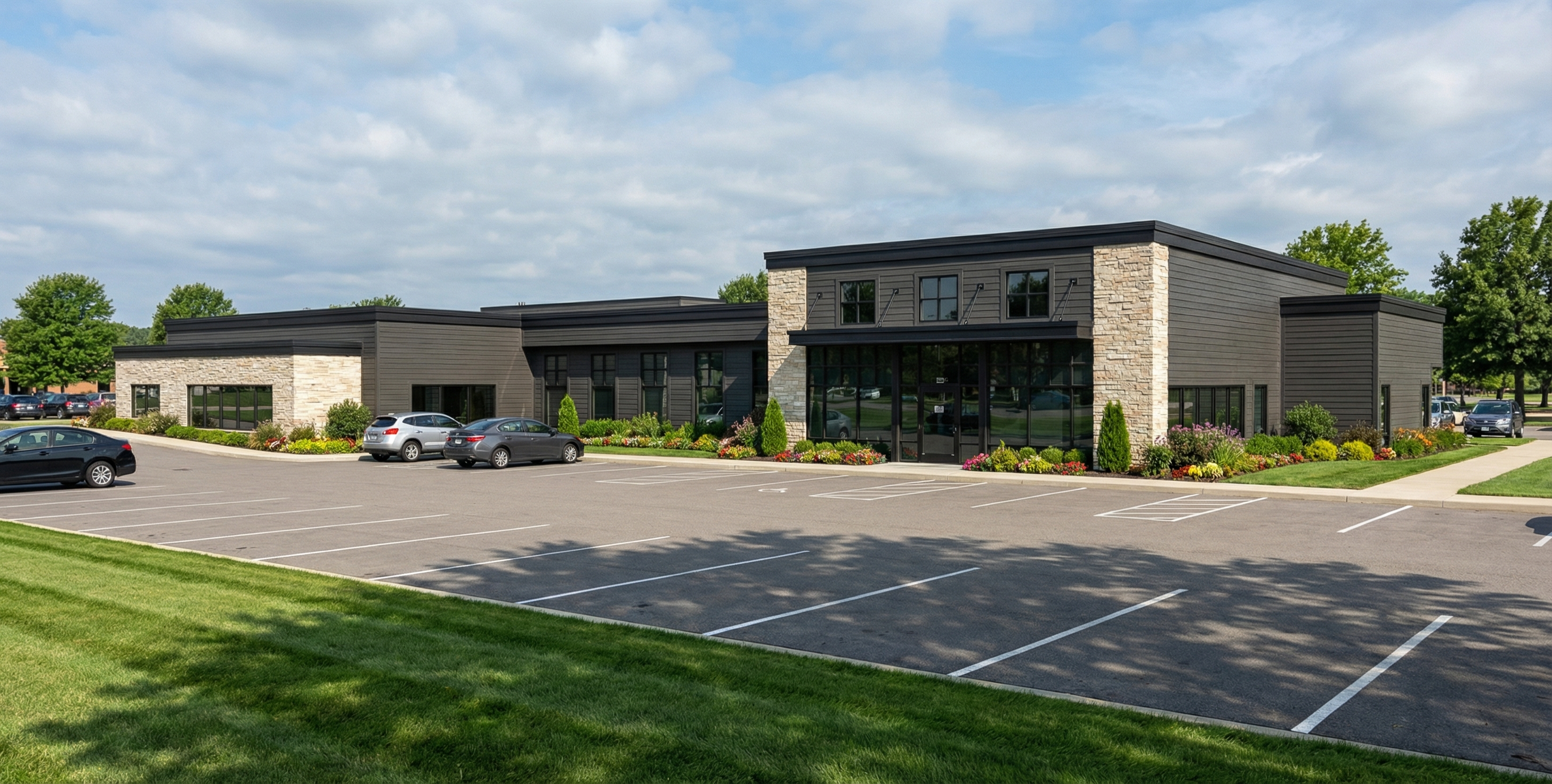 update the existing building model without changing massing proportions roof shape window sizes balcony geometry or camera angle apply a modern restrained residential facade optimized for broad owner occupier appeal near sofia color scheme main facade warm off white slightly warm not pure white window frames balcony frames railings roof edges anthracite dark graphite matte balcony infill clear or lightly tinted glass neutral not green or blue materials finish smooth plaster facade glass balconies with slim dark metal framing no stone no beige sand tones no strong colors minimal shadow lines no decorative elements accents optional restrained limited wood tone only on balcony soffits or small vertical strips maximum 10 15 of visible facade area context lighting mountain rural bulgarian setting neutral daylight realistic shadows balanced exposure so glass reads clean not reflective or tinted the result should feel contemporary calm and comparable to modern sofia residential buildings prioritizing durability and resale appeal