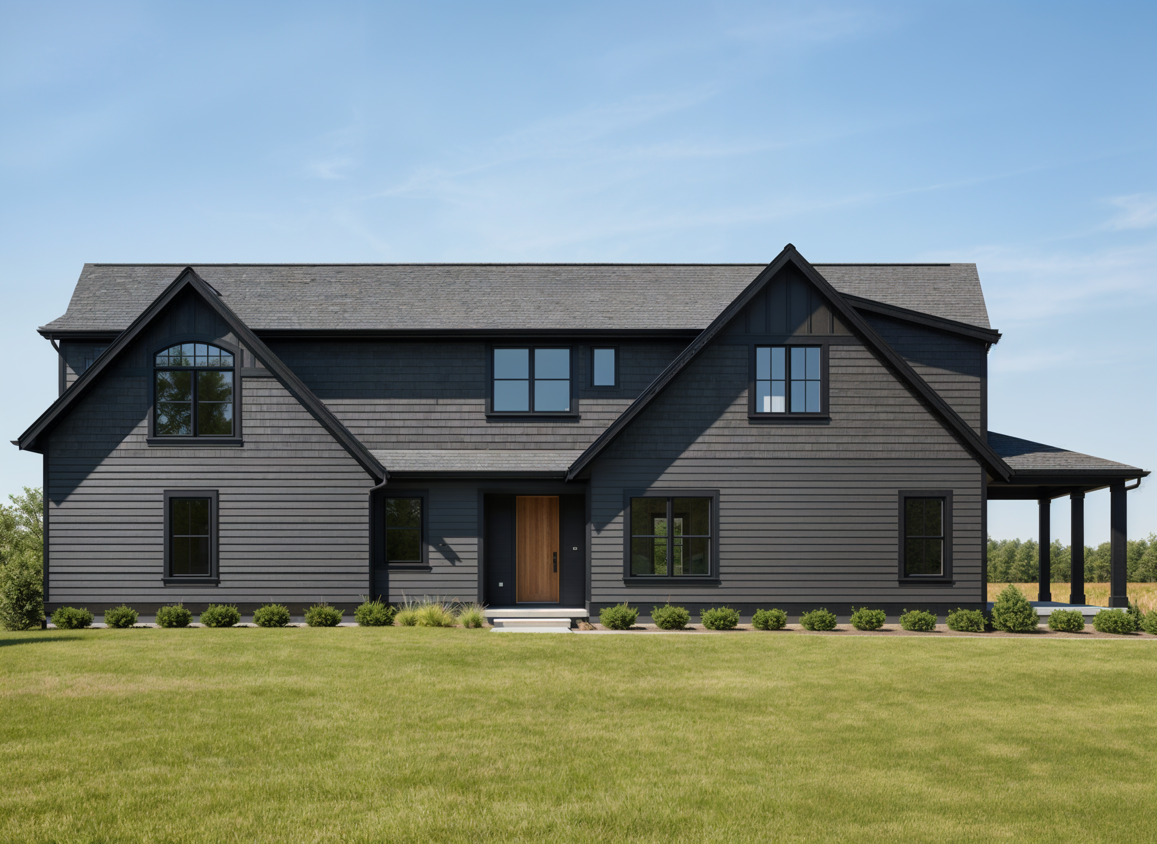dark grey horizontal siding not black all black trim black roof remove the lower right window