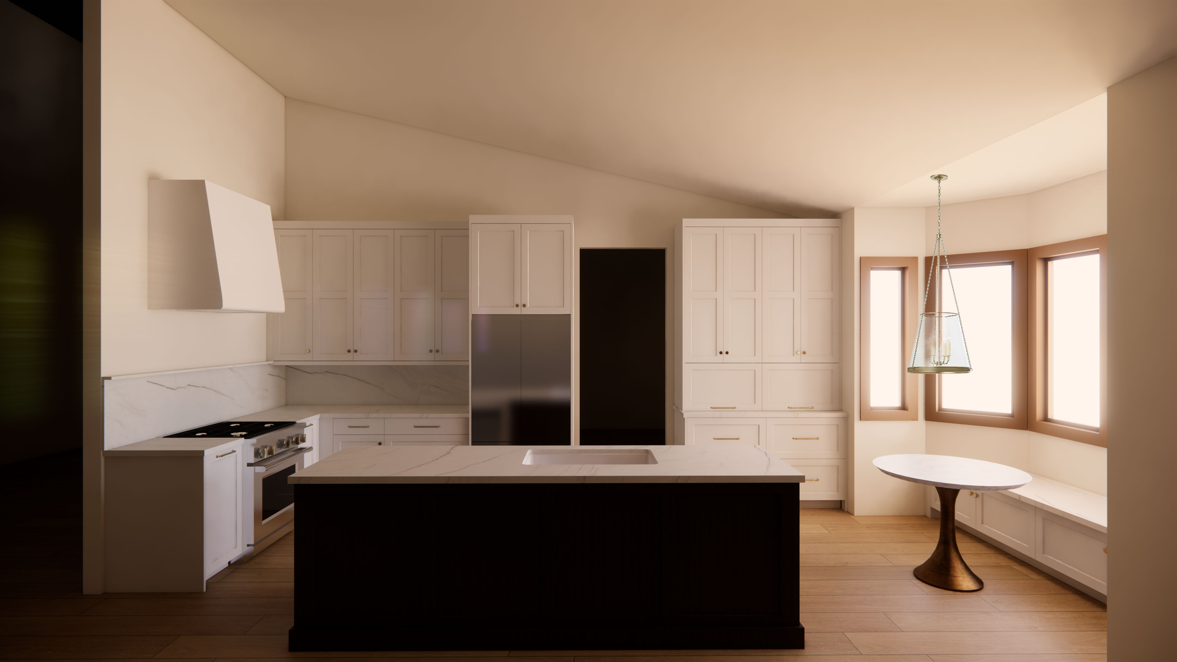 maintain the colors and finishes maintain the image size and all items in the image just place the reference files into the final render the kitchen faucet and water dispenser face the refrigerator place only two chairs on either side of the table on the right