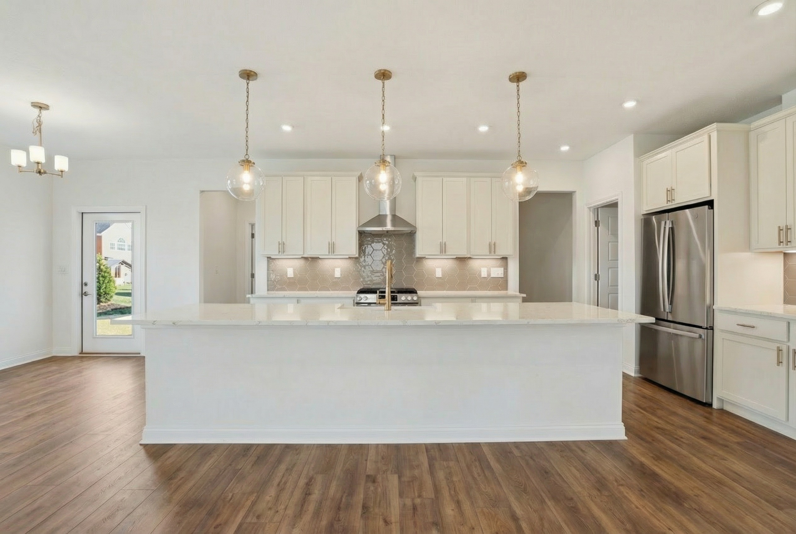 leave everything the same except change the paint color on the island to sherwin williams evergreen fog change all the trim color to sherwin williams natural white