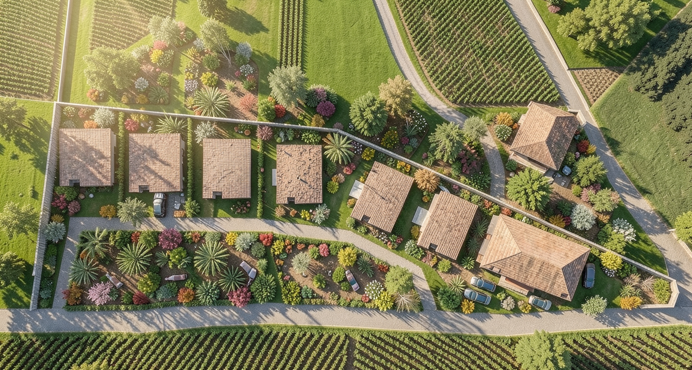 night cozy catenary lights on the perimeter nothing added in the back