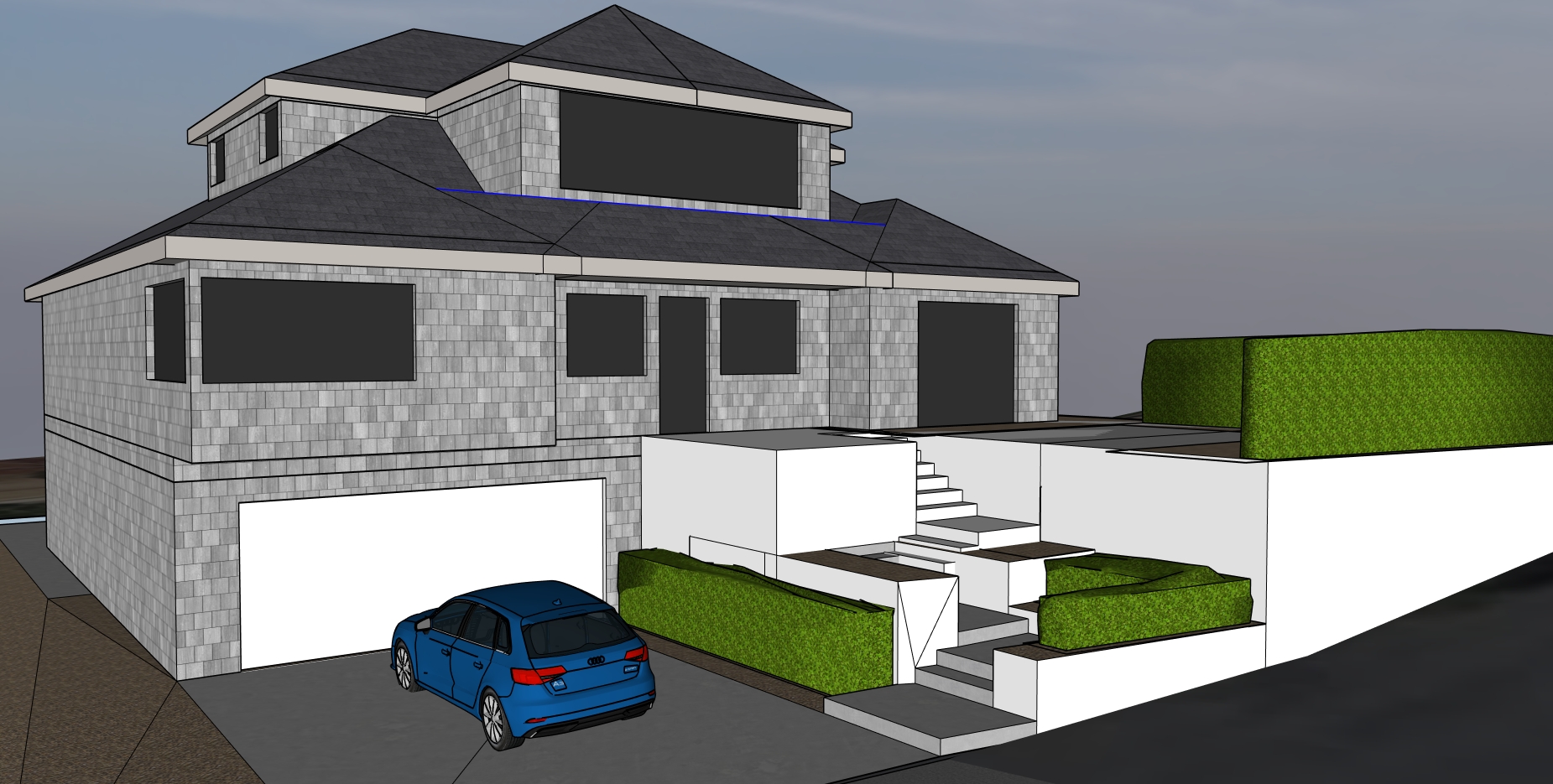 colonial revival exterior shot colonial revival exterior shot gray and white cottage with street in front mountain and ocean behind architecture architecture
