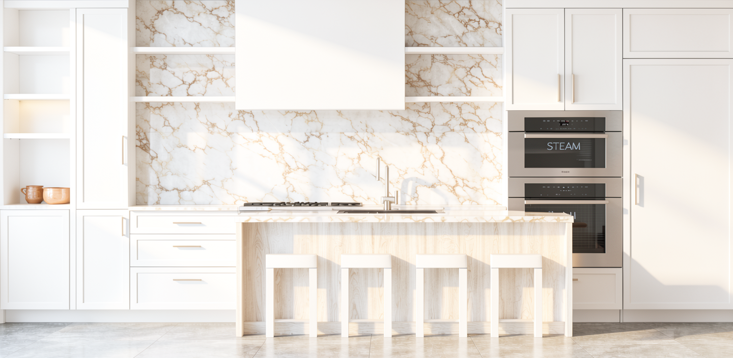 make all the cabinets on back wall in wood island in white no other changes keep image bright