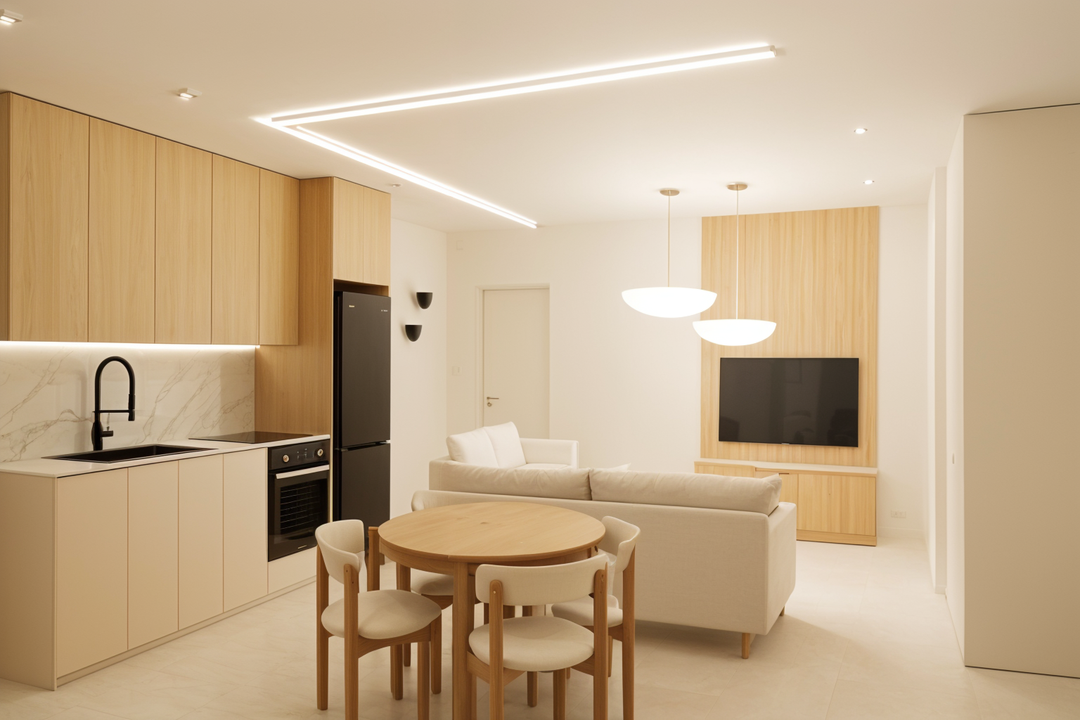 futuristic angular skyscraper with a stunning geometric facade large glass panels reflecting teal and light turquoise hues the building is interspersed with cream and pastel pink surfaces giving a modern and elegant touch surrounded by a cityscape with classic european style architecture under a soft peach and apricot sunset sky lush green trees add vibrancy to the urban setting creating a serene and sophisticated atmosphere