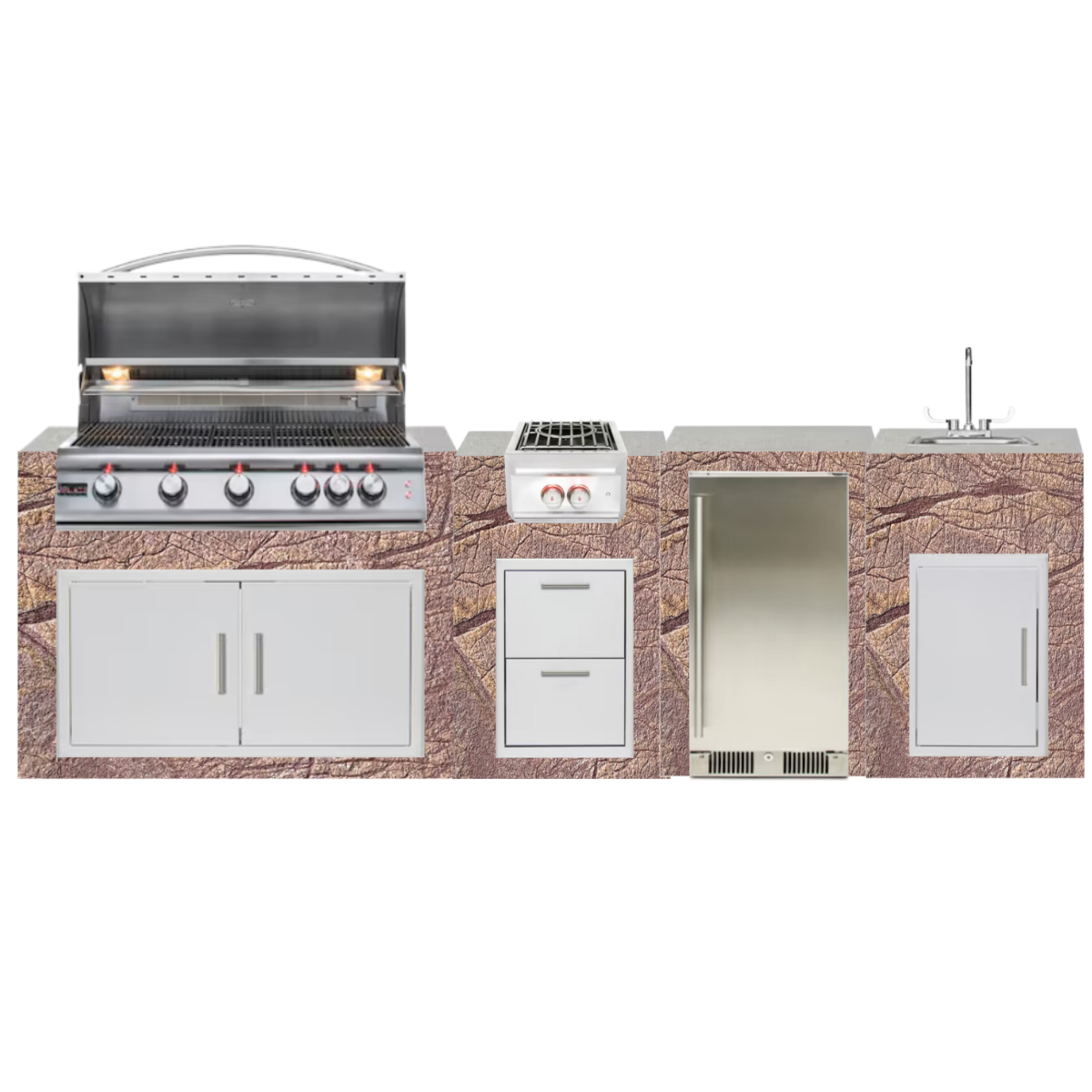 leave colors the same add a 1 white quartz countertop accross the top and small stainless steel legs