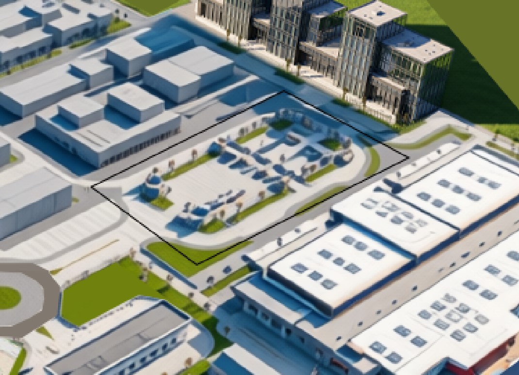 a clean and well organized outdoor parking lot with capacity for about 500 cars middle eastern and beach style tree landscaping approximately one third occupied clear weather realistic style cgi applied only to the selected area original layout disregarded and rearranged fixing current angle of view removing black line