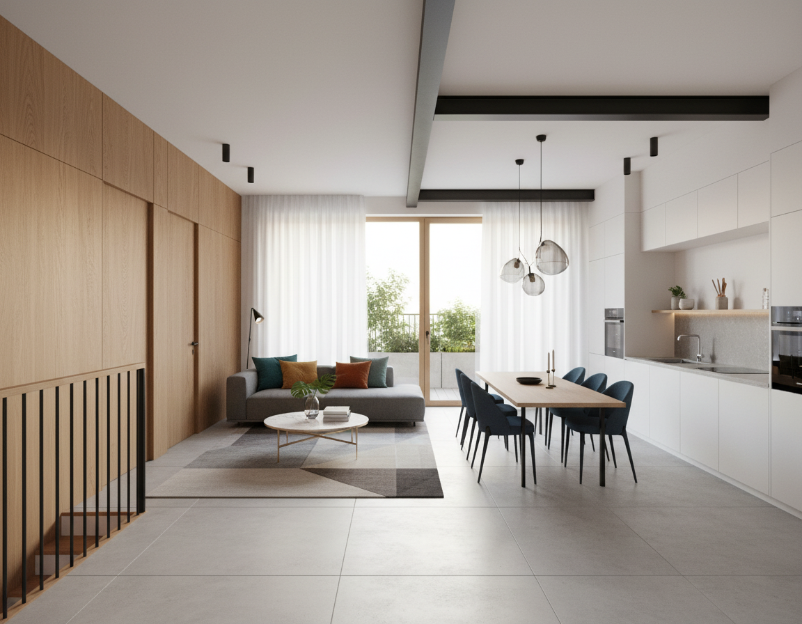 create a 3d kitchen from this elevation dark olive cabinets white marble benchtops