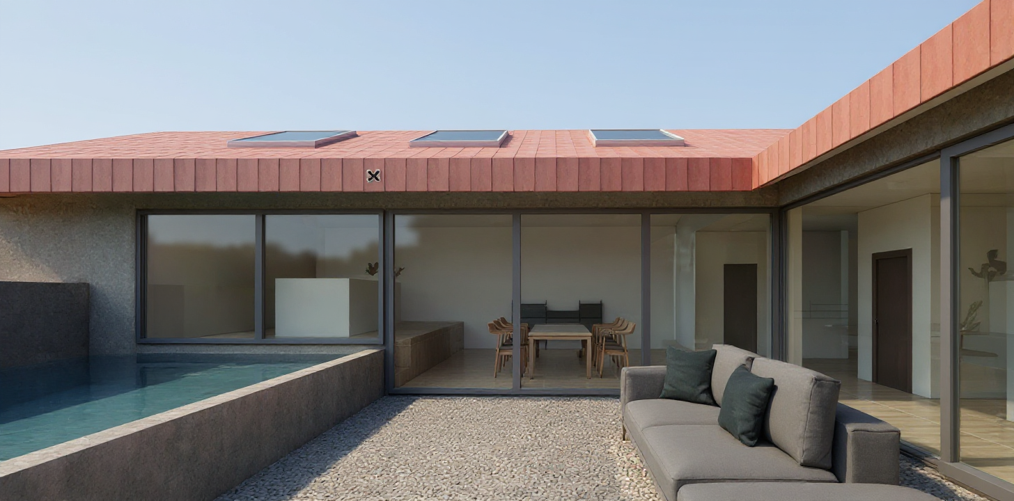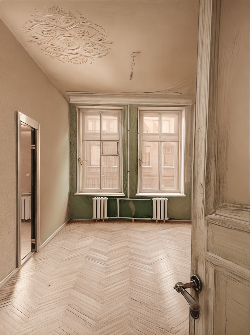 exterior shot an empty kitchen fresh after renovation wood parquet floor and fresh surfaces