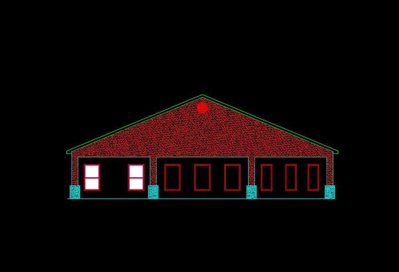 generate beautiful elevations renders with light inside with white stucco on front walls and black tile roof