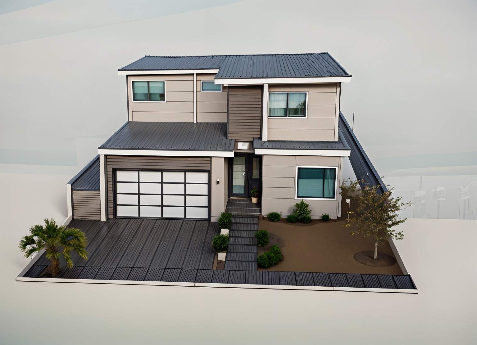 exterior shot change upper story stucco color to match upper story moodboard reference color with riglets