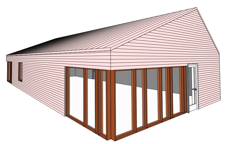 exterior shot replace the roof texture with a standing seam metal roof all other items in the image should remain the same the color of the roof replacement should be the same color as the walls a pinkish hue architecture