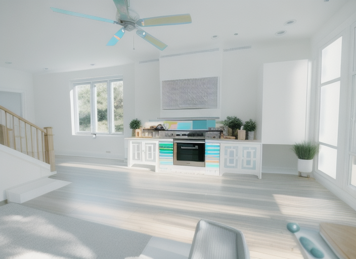 interior shot create a photorealistic vray style rendering based on the attached image convert the interior surfaces and materials into realistic textures with accurate light behavior while keeping all geometry exactly the same do not change or modify any modeling elements this includes window sizes door frames room dimensions ceiling height furniture shapes and sizes and all spatial proportions keep the original camera angle and maintain a 16 9 aspect ratio all spatial forms in the image must remain exactly as shown only enhance the image by applying realistic lighting material textures and natural vray style shading without altering the original colors or layout ensure that the installed wall lights emit visible light kitchen upper and lower cabinets must remain light beige the final result should look like a lifelike vray rendered version of the original image with realistic materials reflections and lighting architecture