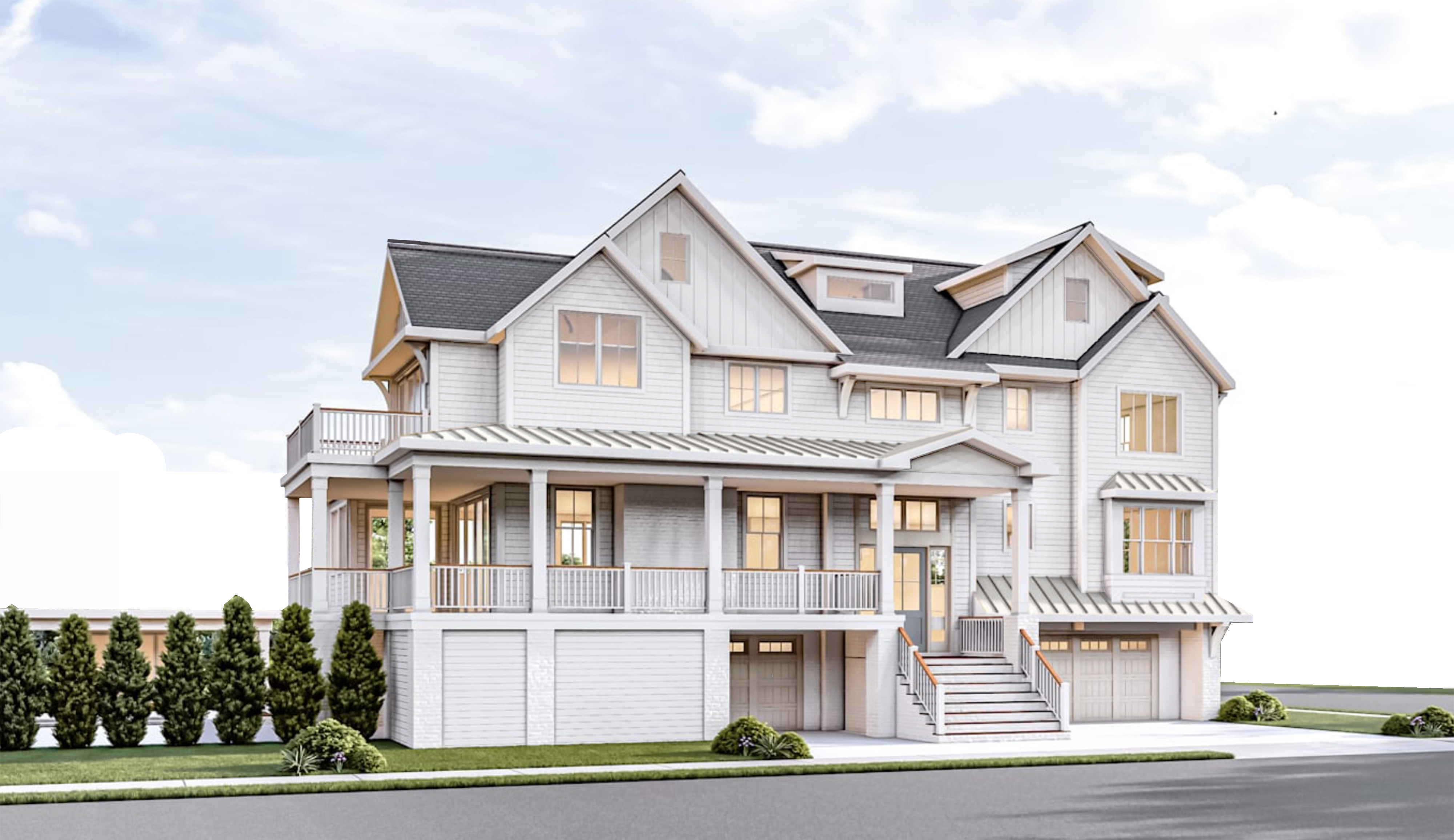 exterior shot enhance this architectural render for hyper realism while maintaining all existing colorways refine materiality with accurate textures wood grain brick glass reflections metal finishes and realistic surface qualities specular highlights and depth improve landscaping with lifelike foliage natural shadows and atmospheric lighting that reflects time of day conditions calibrate scale proportion and depth of field for photographic accuracy elevate details such as window reflections ground textures and edges for maximum realism while ensuring the design intent and overall palette remain true to the original render architecture