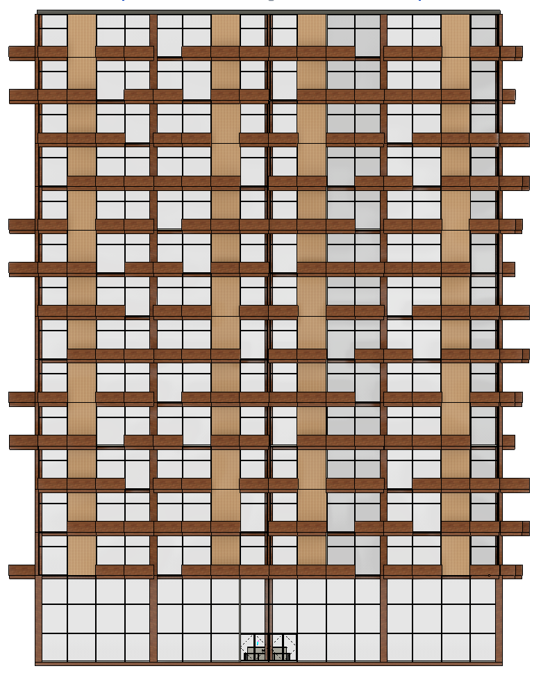 travertine facade timber columns and balconies