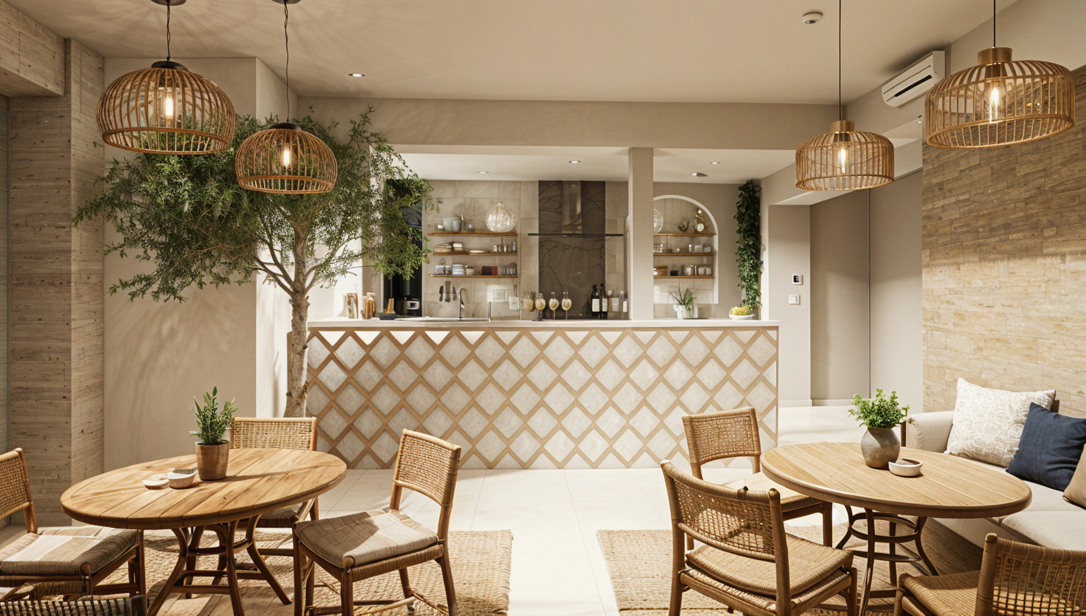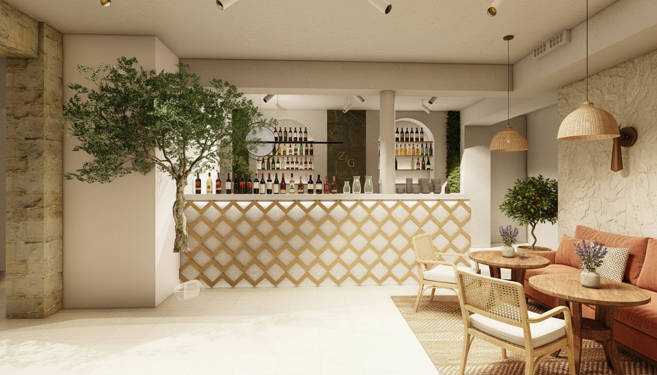 white stucco walls earth tone mountain stone bluestone paving modern patio furnishings person in pool
