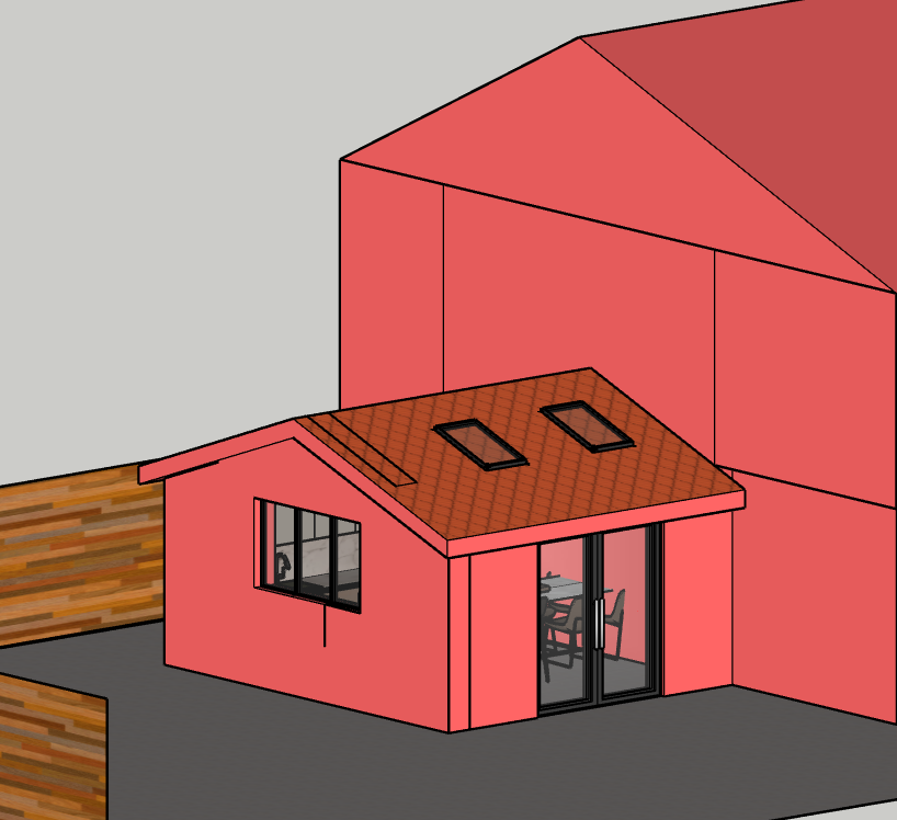 make this a nice external shot of this clients rear extension make the walls a nice white render and the roof orange tiles add a boundary fence and some landscaping make the lighting natural