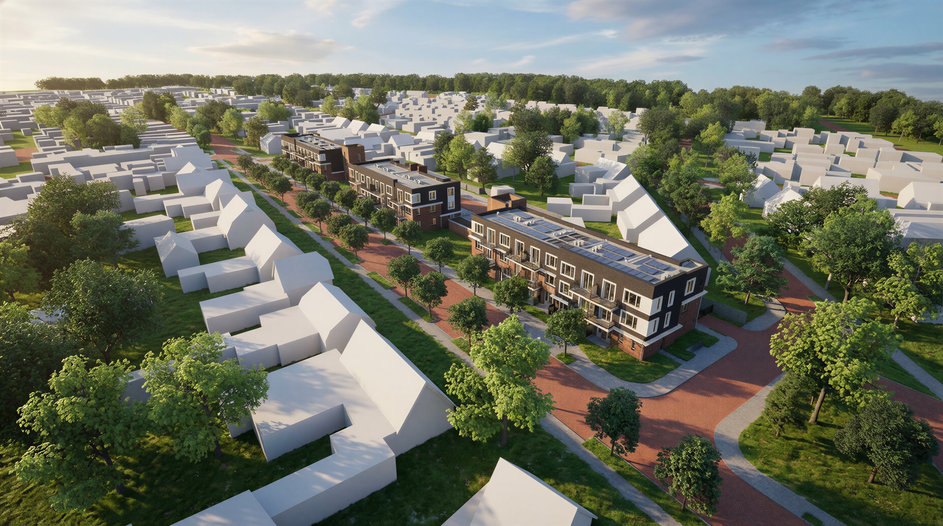 dakpannen uitvoeren als realistische antracietkleurige vlakke keramische dakpannen met gevelpannen scherpe randen lichte variatie in tint natuurgetrouwe glans realistische schaduwwerking en correcte schaal