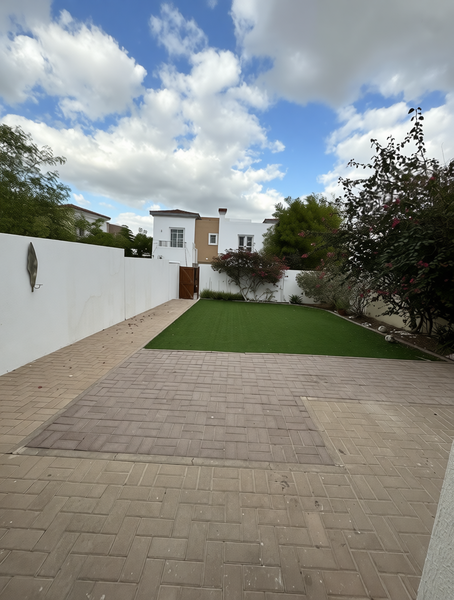 cambiar el suelo por marmol beige dejar el cesped