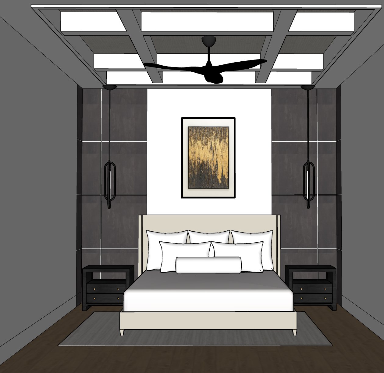 modern interior shot this is a modern neutral master bedroom with white oak plank floors please have warm light coming from the black iron modern pendant lights over the nightstands architecture
