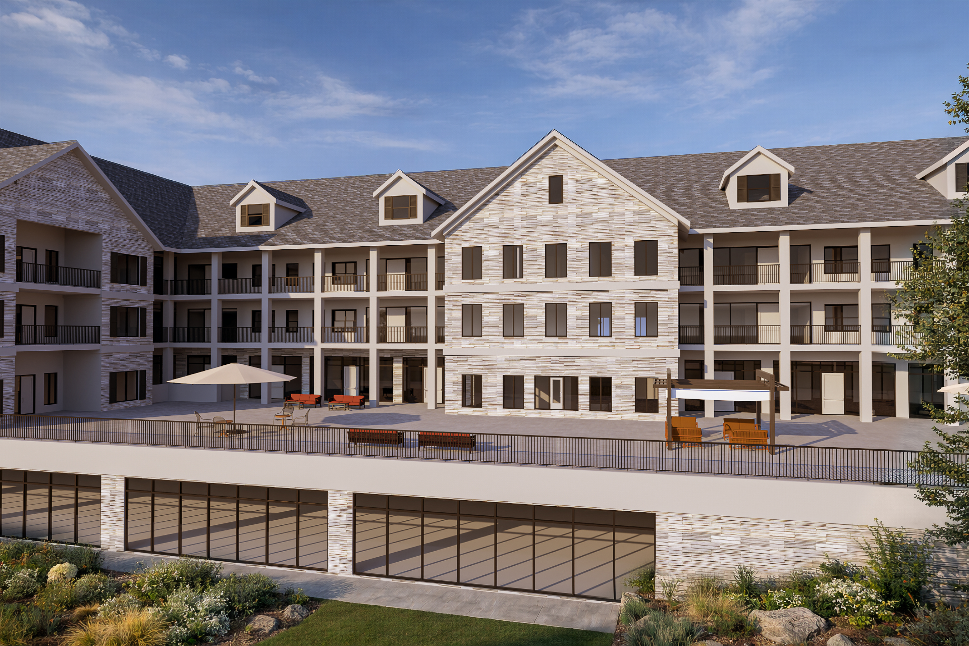 render this image showing a high end luxury courtyard area