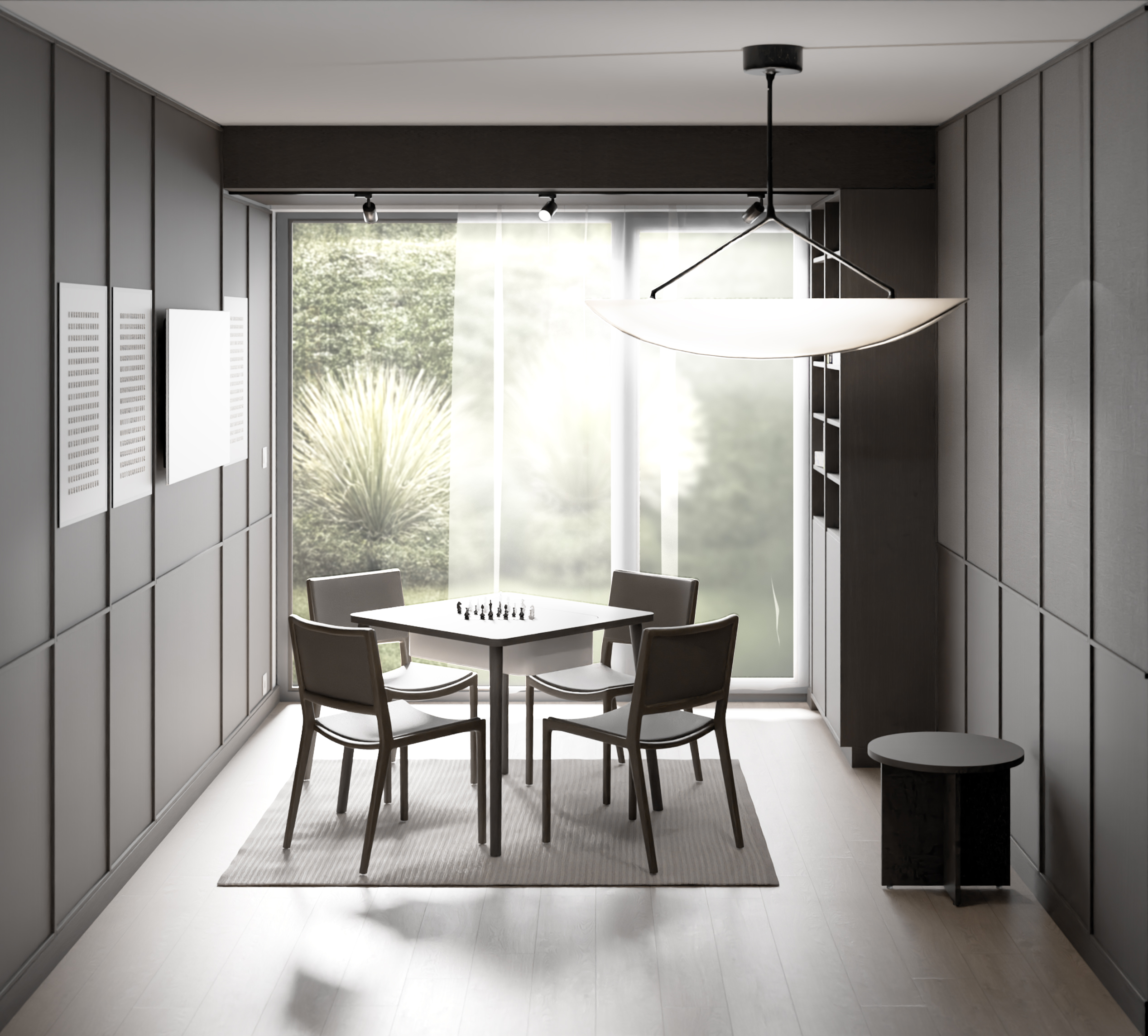 exterior shot ciemne nowoczesne minimalistyczne wn trze do gry w karty