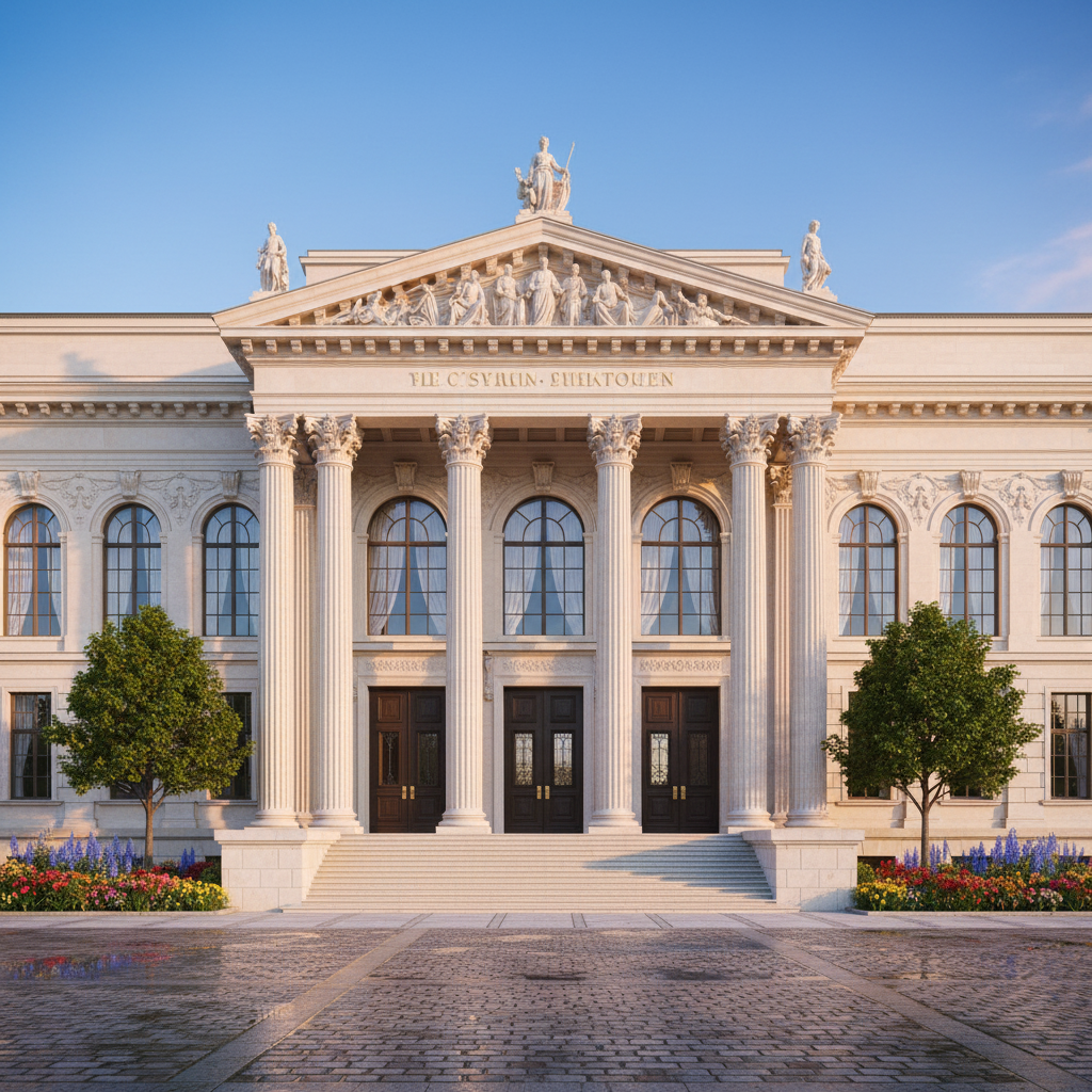 neoclassical exterior shot i want a 3d render for my bedroom in neoclassical style architecture