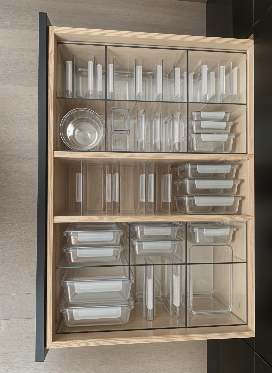 sol parquet canap tissu confortable ros avec coussins tables basses gigogne vaisselier droite bleu nuit et porte en verre