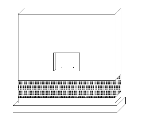turn this into a realistic drawing with a rust colored tile on the face a 3 sided fireplace and a walnut mantle