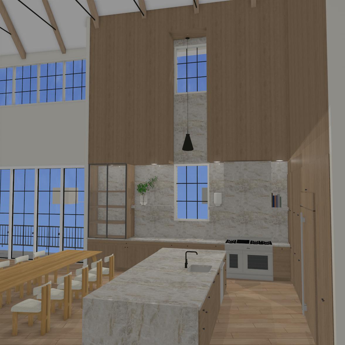white oak floors and cabinets taj mahal countertops and backsplash wooded lake lot out window